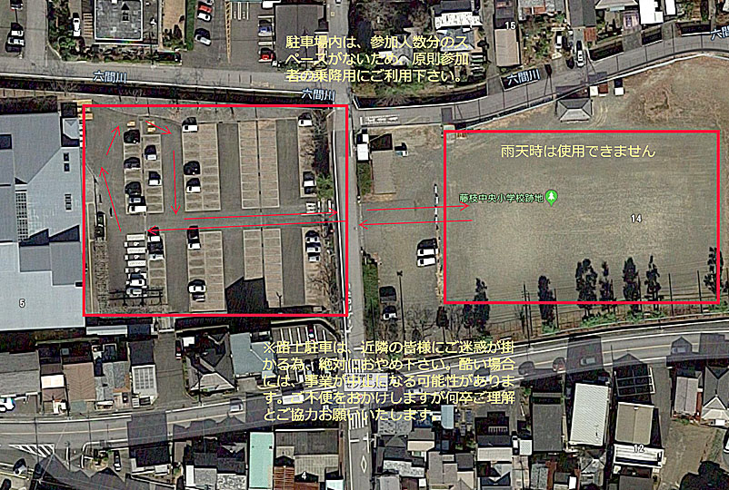 駐車場内は、参加人数分のスペースがないため、原則参加者の乗降用にご利用ください。